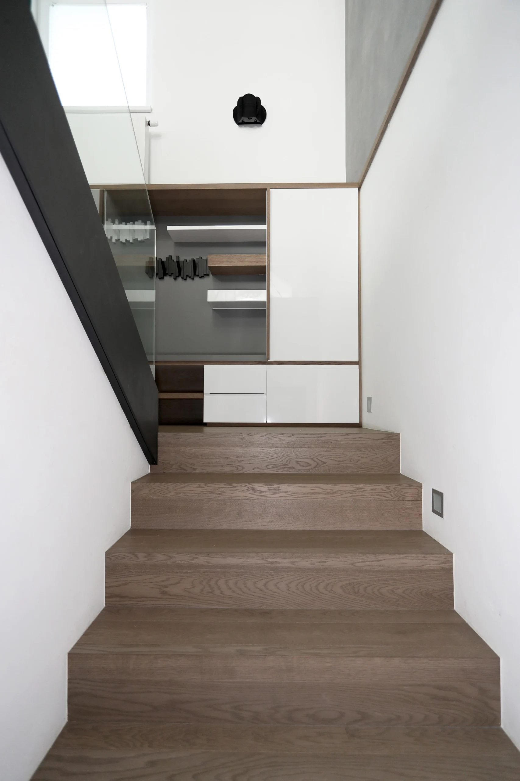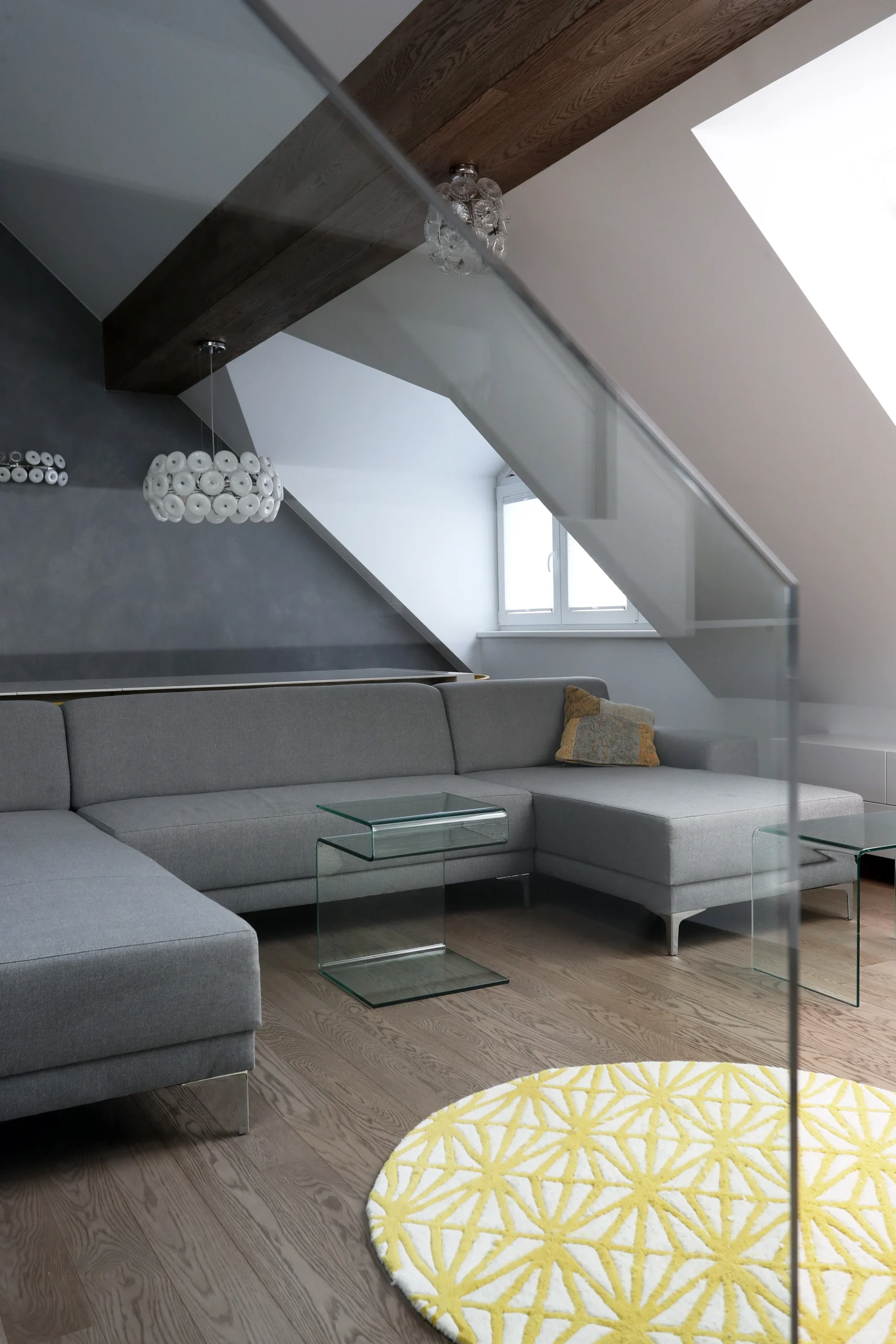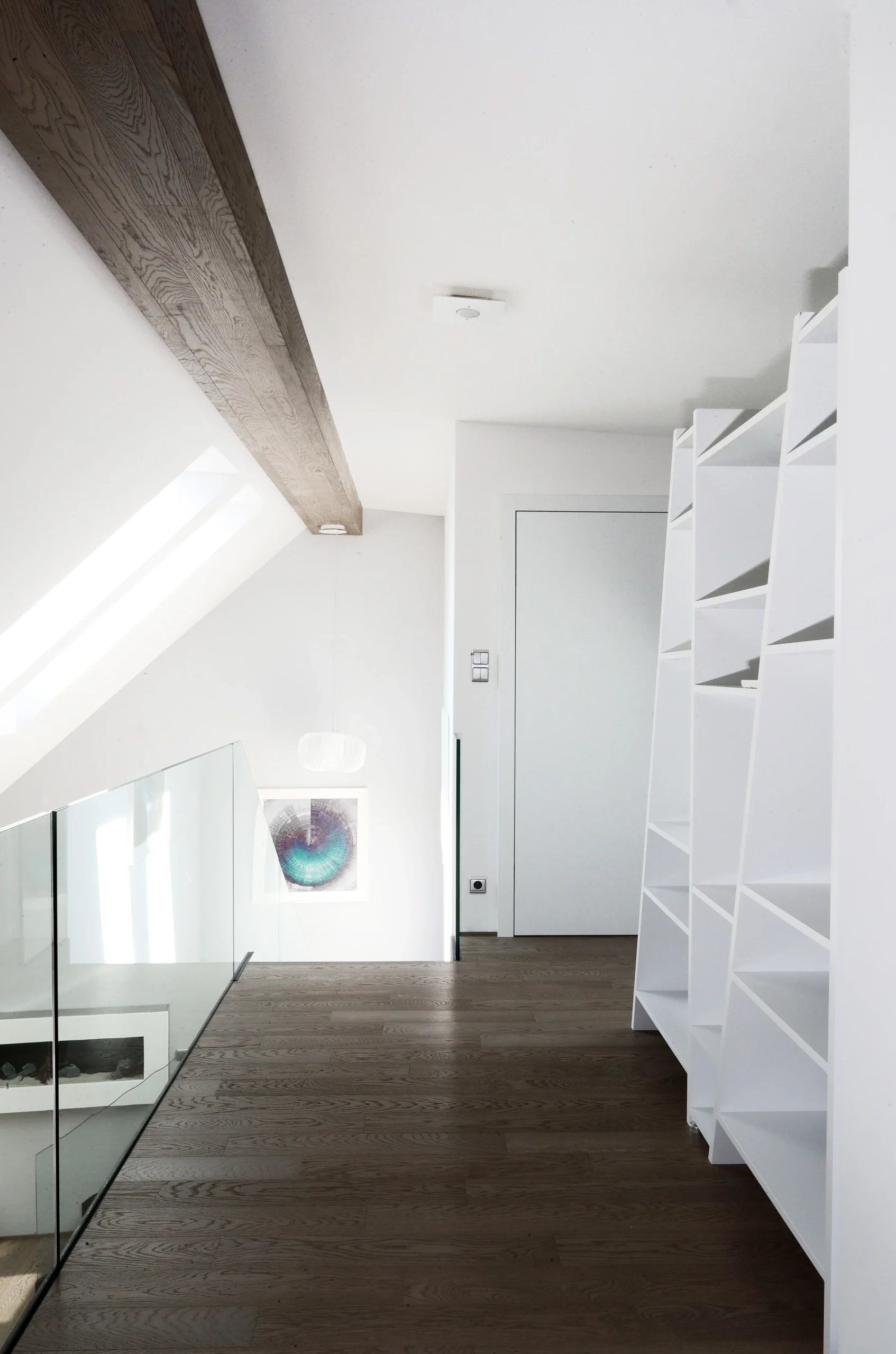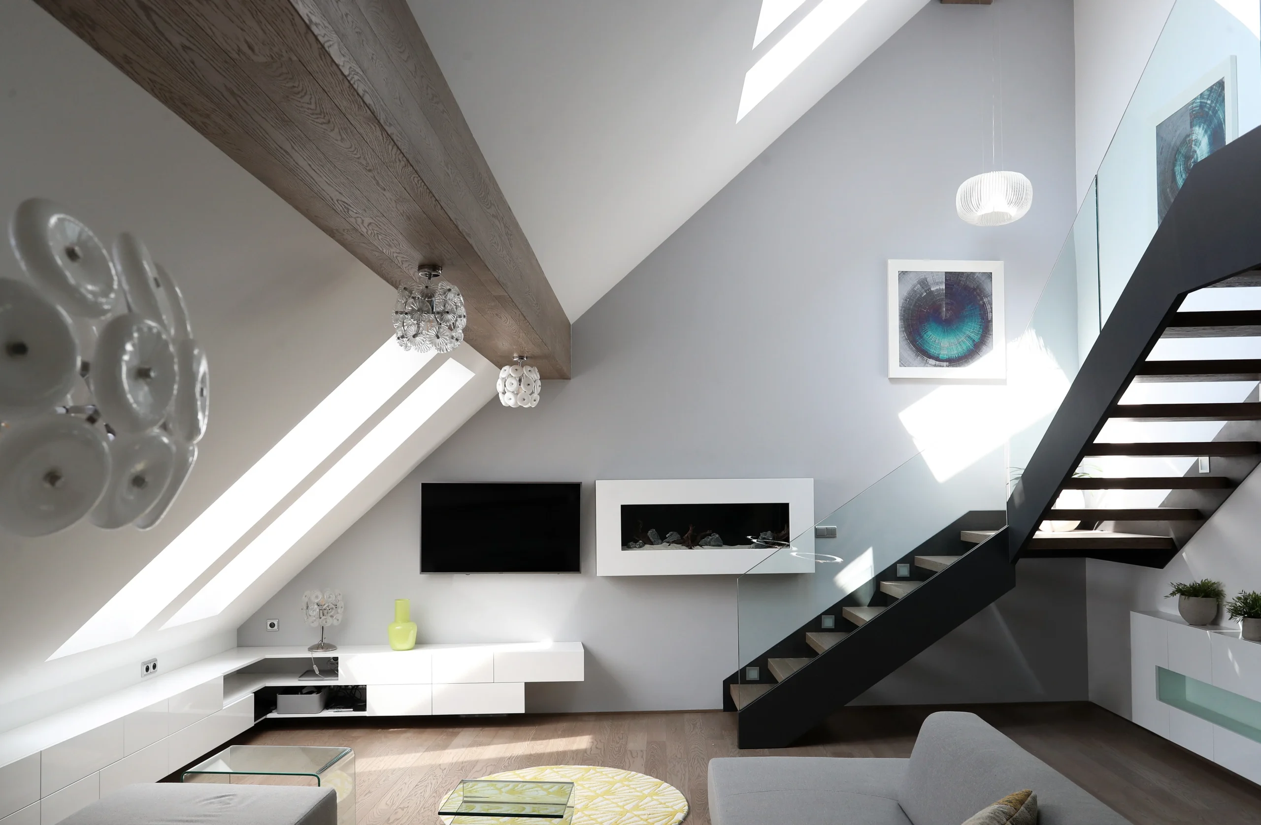 Nástavba vytváří prostorný mezonet s jasně oddělenými zónami. Důraz na komfort, světlo a funkční rozdělení prostoru.