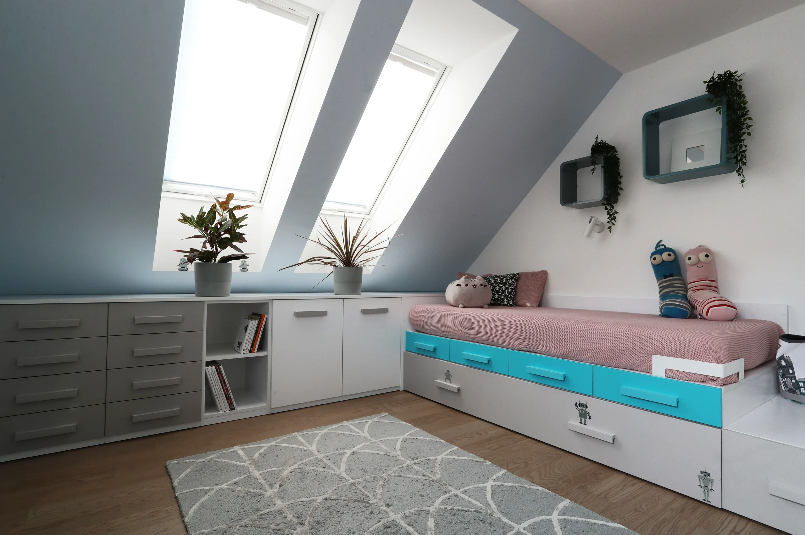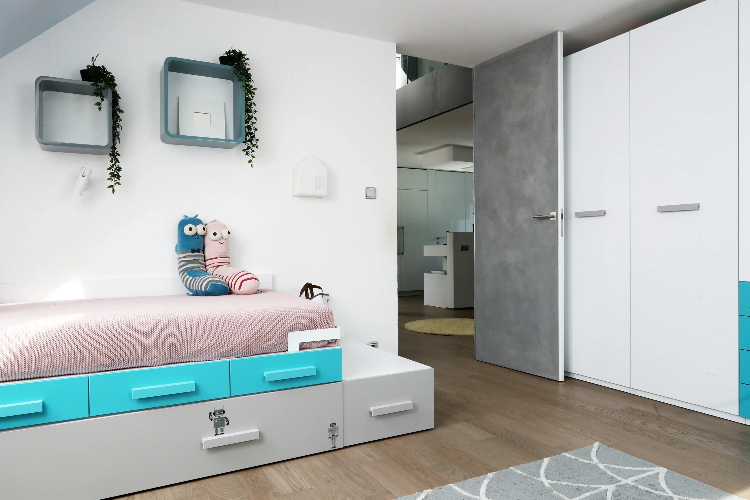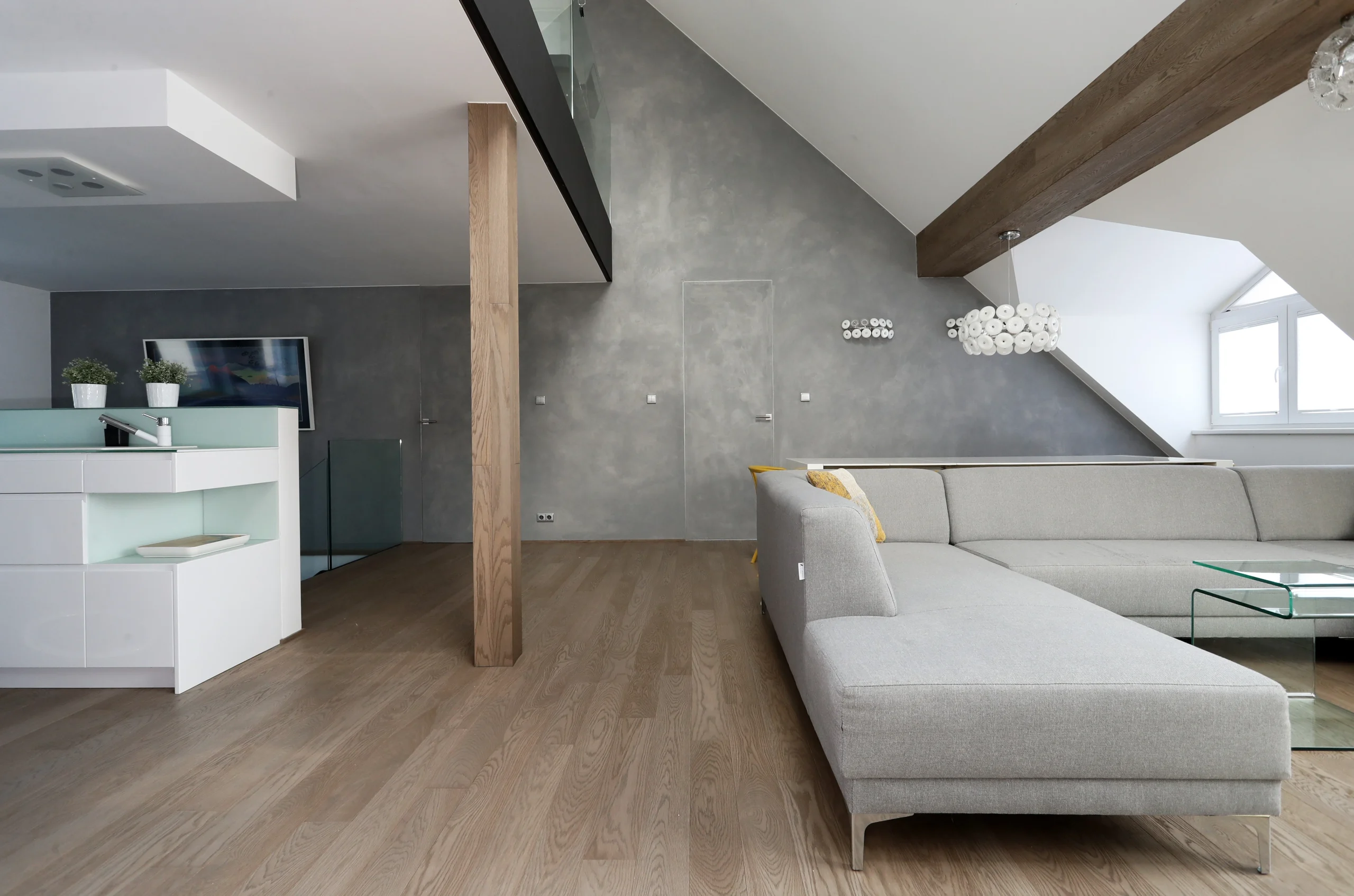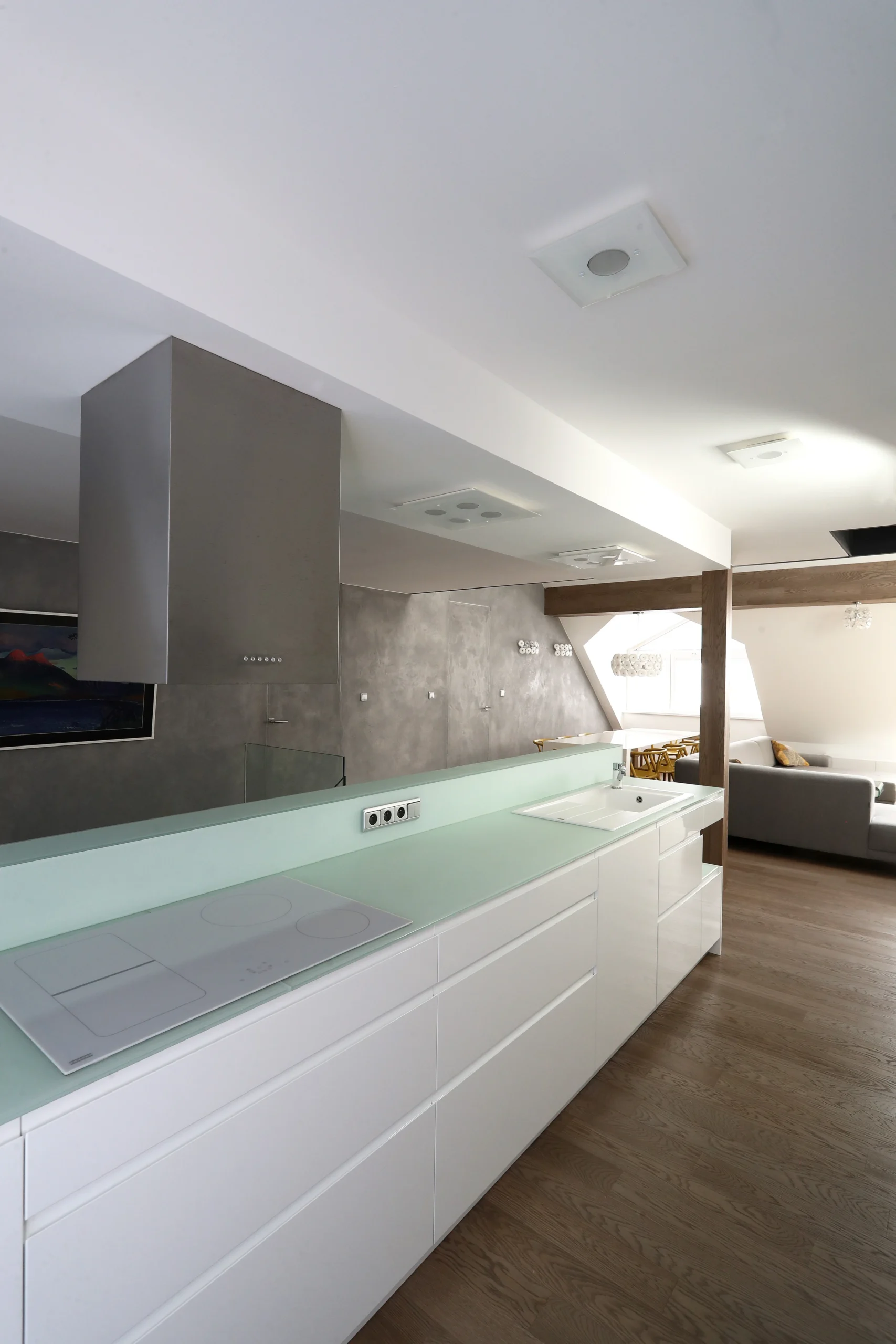 Nástavba vytváří prostorný mezonet s jasně oddělenými zónami. Důraz na komfort, světlo a funkční rozdělení prostoru.